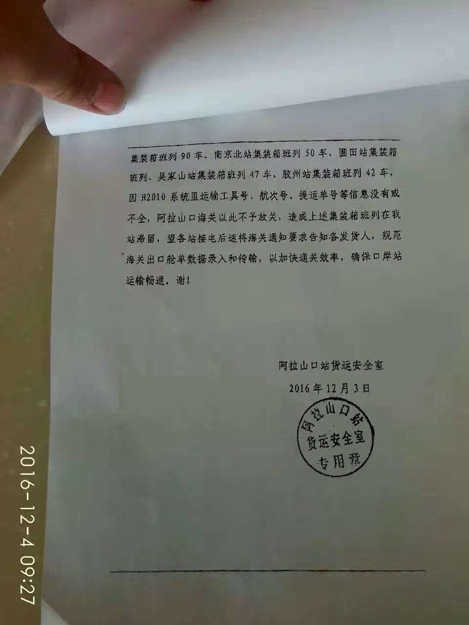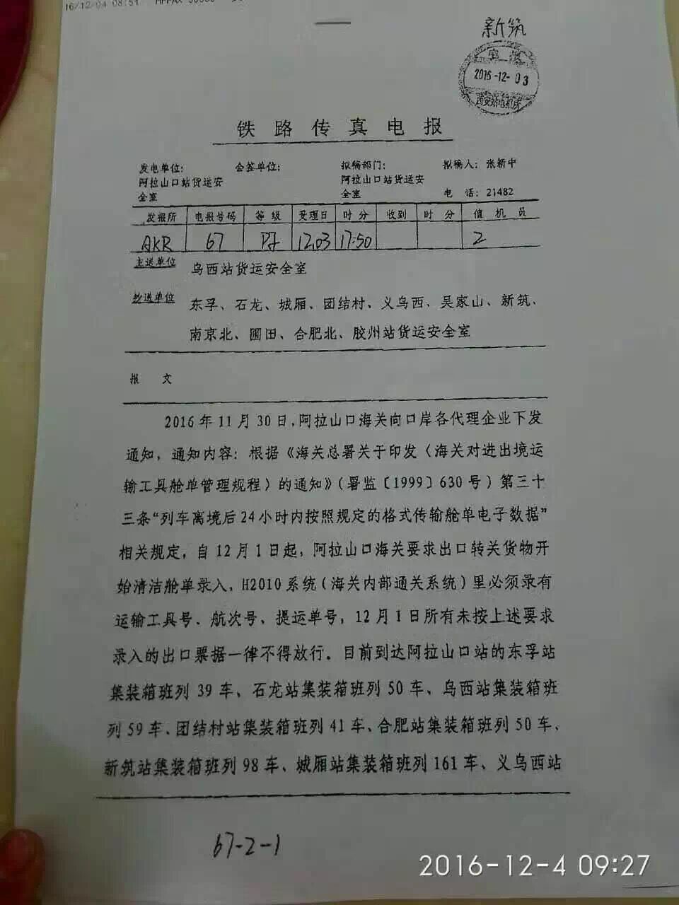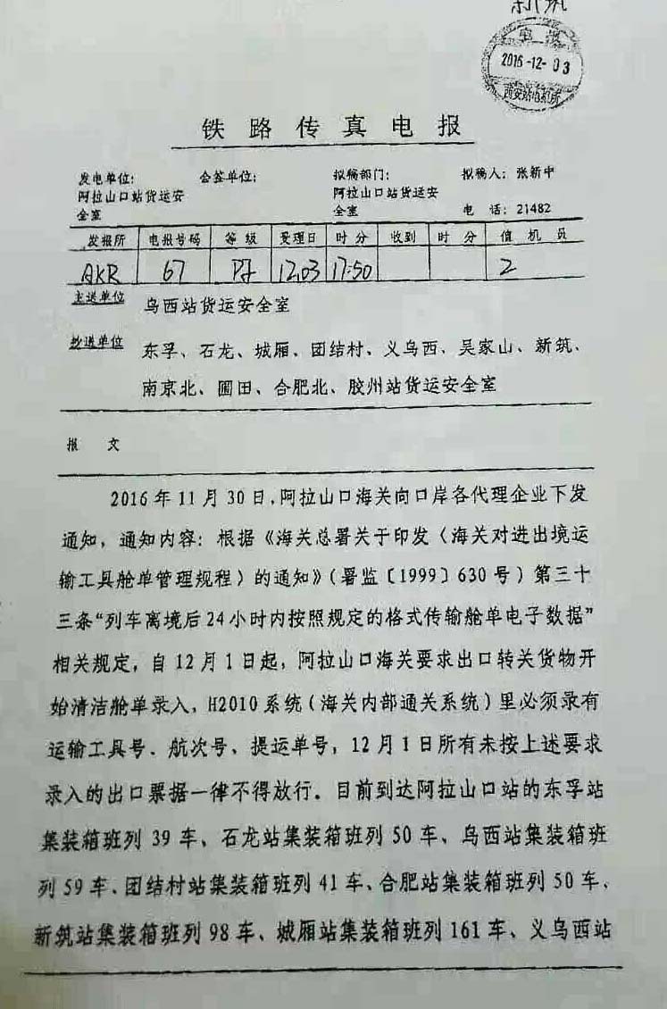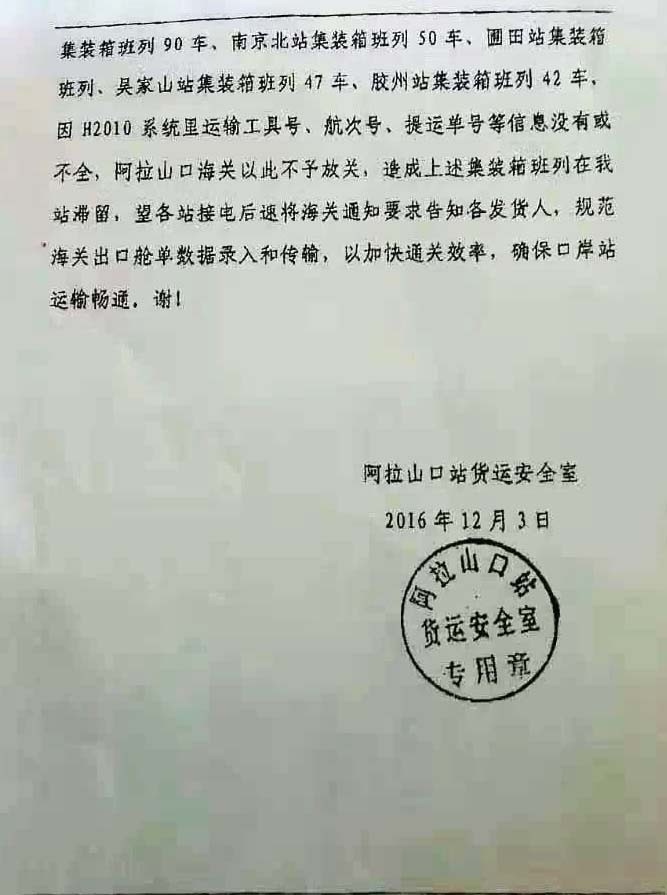 另外,各地班列陸續(xù)發(fā)車,造成新疆沿線堵車,致使從啟運(yùn)地到口岸的鐵路運(yùn)輸時間也不能保證,請知悉!
