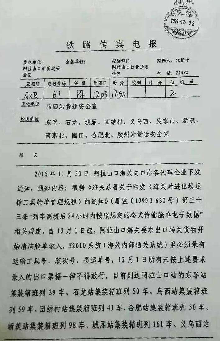而各地陸續(xù)發(fā)運(yùn)的鐵路班列,為保證運(yùn)輸效率,發(fā)運(yùn)地采用先報(bào)關(guān)后裝車方式,造成轉(zhuǎn)關(guān)單不符合口岸海關(guān)要求,因此導(dǎo)致阿拉山口口岸貨物大量滯留,截至發(fā)稿已逾1000車,只能采用人工補(bǔ)錄放行的處理方式,擁堵或?qū)⒊掷m(xù)較長時間。